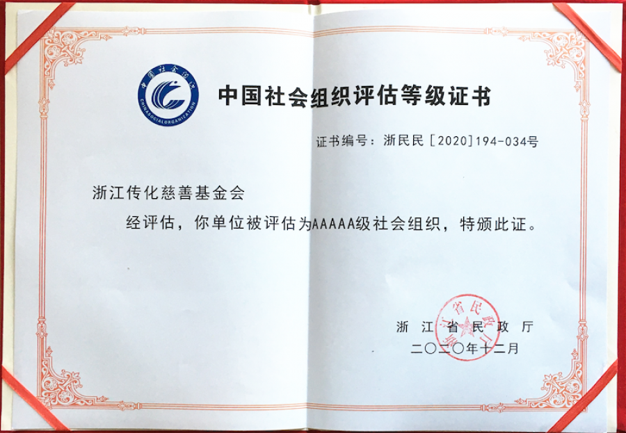 近日,浙江省民政廳公布了2020年度全省性社會組織評估結果,首次參評的傳化慈善基金會獲評“5A級社會組織”稱號,這是社會組織評估的最高等級,也成為浙江省創(chuàng)辦時間最短即獲得5A等級的社會組織。